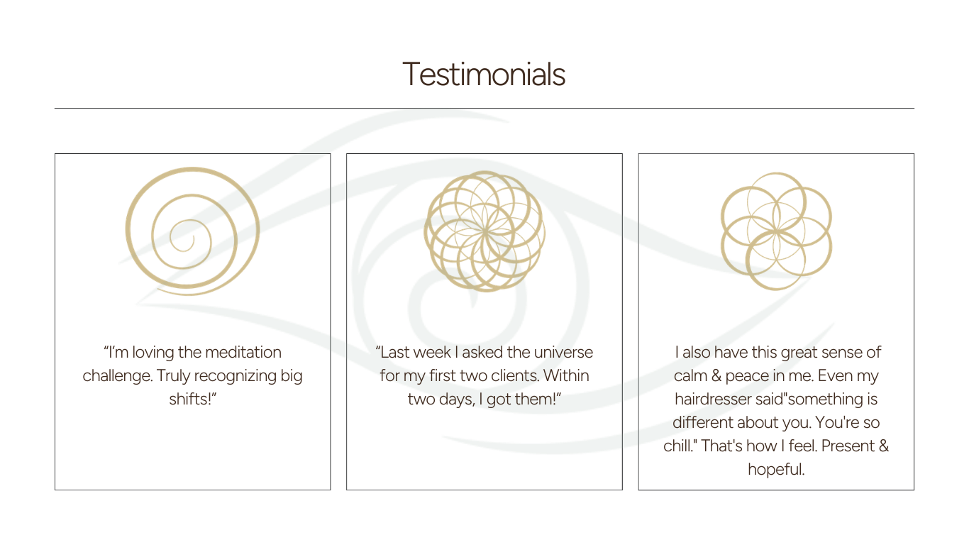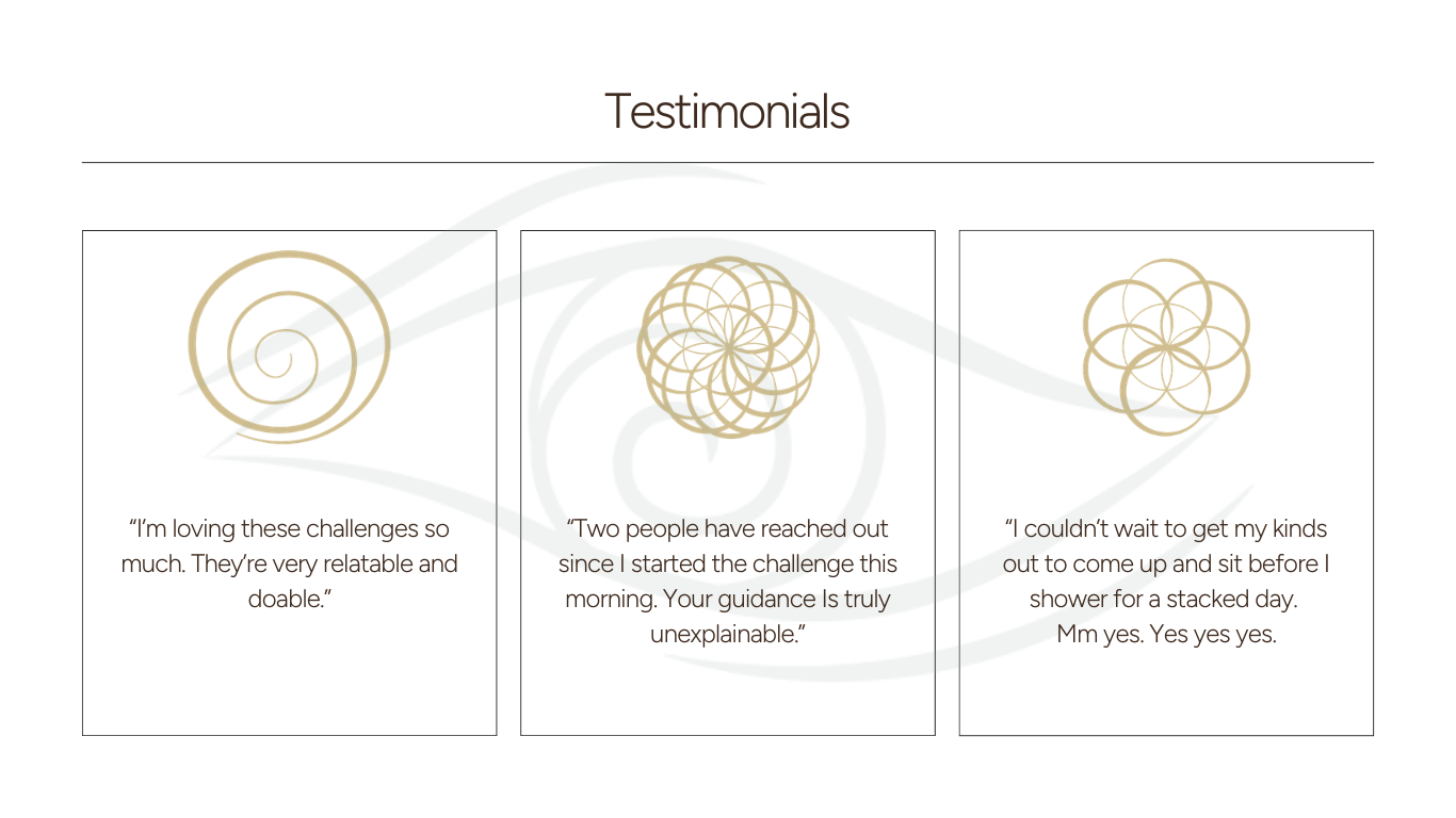 The Weekly Frequency includes Jamie’s weekly Wisdom Drop. You will also get three separate SHIFT with Jamie meditations (one Mantra, one Breathwork, and one Reiki Bath meditation) during the challenge.